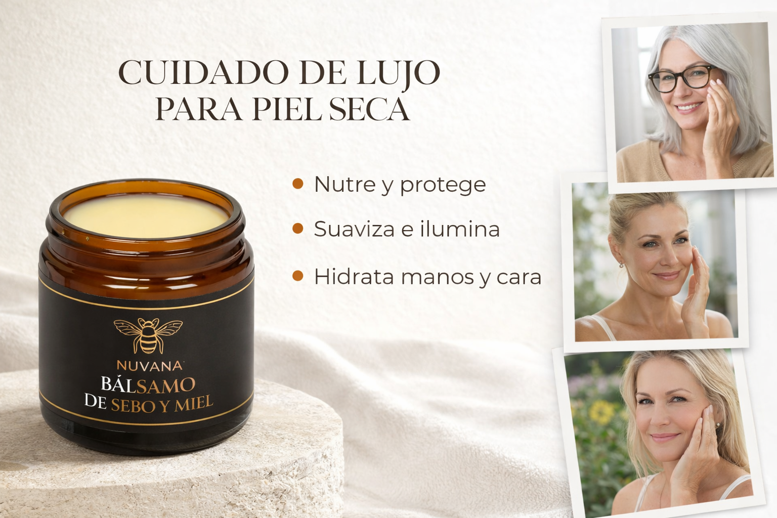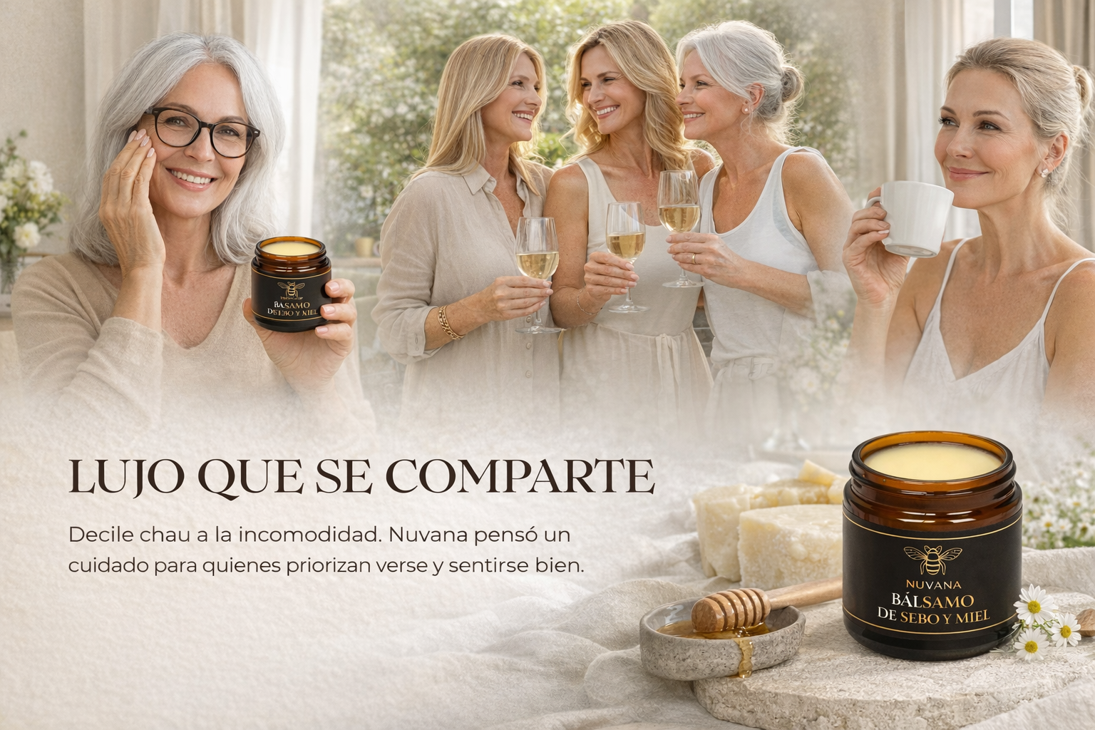 Durante años, muchas pieles probaron de todo y siguieron sintiéndose tirantes, resecas o incómodas.Nuvana nace de volver a lo simple: ingredientes nobles, texturas reales y cuidado que se siente desde la primera vez.Un bálsamo pensado para acompañar tu piel, no para exigirle más.